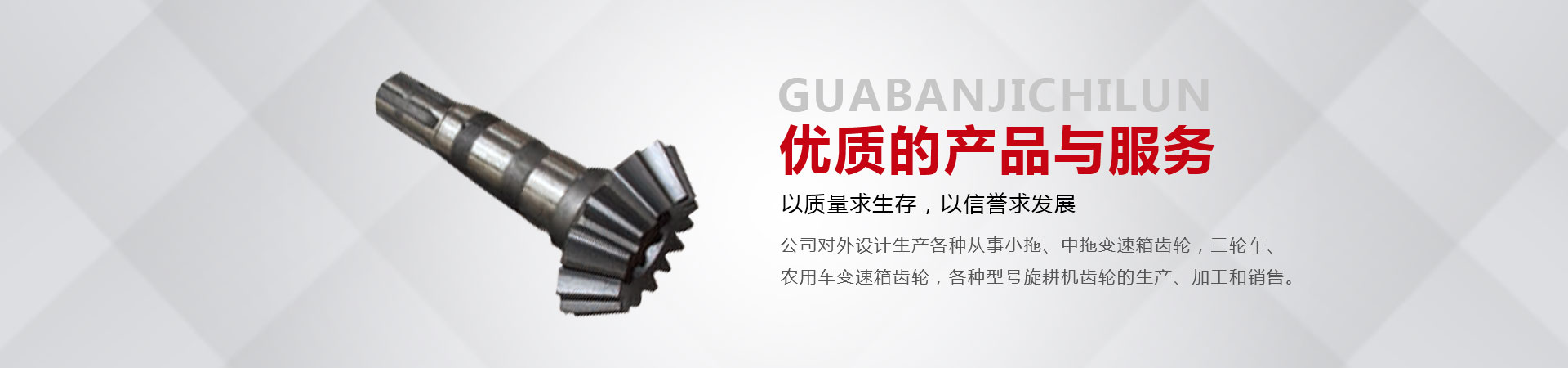 本廠位于省會(huì)東南60公里的全國(guó)重點(diǎn)鎮(zhèn)——大陸村鎮(zhèn)。本廠在市場(chǎng)內(nèi)設(shè)有銷售公司,經(jīng)銷工程機(jī)械;農(nóng)用拖拉機(jī);農(nóng)機(jī)具的整機(jī)和全車配件。市場(chǎng)緊靠308國(guó)道,距青銀高速寧晉路口14公里,交通十分方便。主要從事小拖、中拖變速箱齒輪,三輪車、農(nóng)用車變速箱齒輪,各種型號(hào)旋耕機(jī)齒輪、收獲機(jī)械變速箱齒輪的生產(chǎn)、加工和銷售。同時(shí)加工定做各種直齒輪,傘齒輪,斜齒輪,鏈輪,齒輪軸等機(jī)械產(chǎn)品。廠內(nèi)檢測(cè)手段齊全。十幾年來與河北、北京、山東、安徽、河南、吉林、陜西、山西、寧夏、黑龍江、遼寧等省市的企業(yè)建立了穩(wěn)固的業(yè)務(wù)關(guān)系。產(chǎn)品質(zhì)量穩(wěn)定、價(jià)格合理、供貨及時(shí)。
